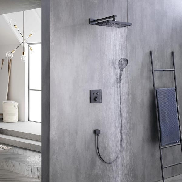 Single Handle Shower Faucet 2.2GPM Square 1 Setting Shower Head Wall Mounted 3Spray Settings 1.8 GPM in. Matte Black