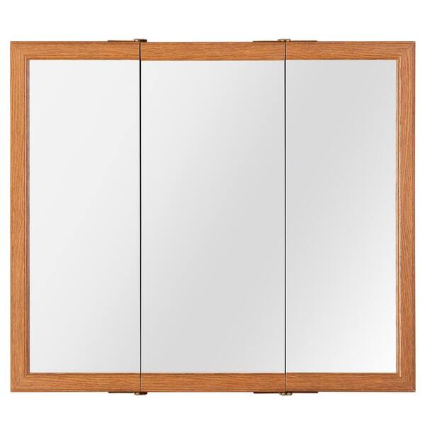Kingswood 30 in. Surface Mount Oak Tri-View Medicine Cabinet with Mirror