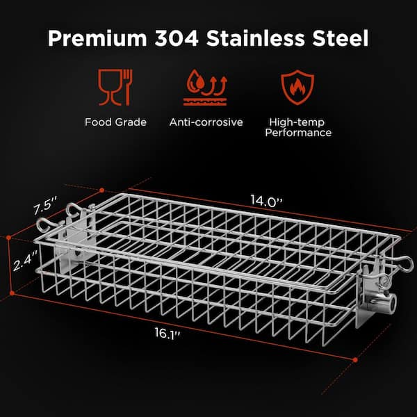 Flat Rotisserie Basket, Universal, Compatible with 1/2 in. or 3/8 in. Hexagon, 3/8 in. or 5/16 in. Square Spit Rods