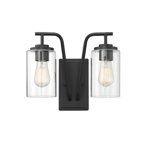 14 in. W x 11 in. H 2-Light Matte Black Hardwired Outdoor Wall Lantern Sconce with Clear Glass Shades