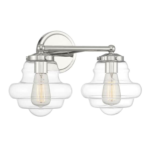 16.5 in. W x 10 in. H 2-Light Polished Nickel Bathroom Vanity Light with Clear Glass Shades