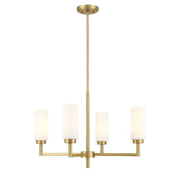 26 in. W x 17 in. H 4-Light Natural Brass Contemporary Chandelier with White Opal Glass Shades