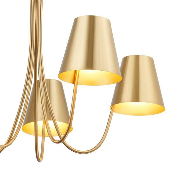 32 in. W x 23 in. H 5-Light Natural Brass Modern Chandelier with Metal Shades