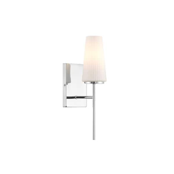 4.75 in. W x 16 in. H 1-Light Chrome Transitional Wall Sconce with Fluted White Opal Glass Shade