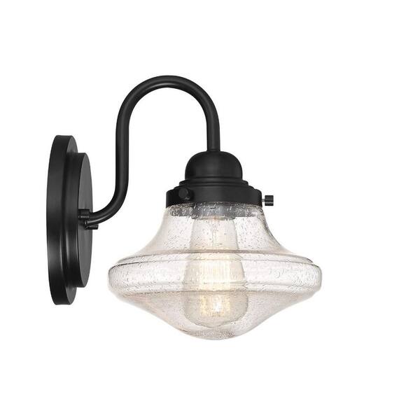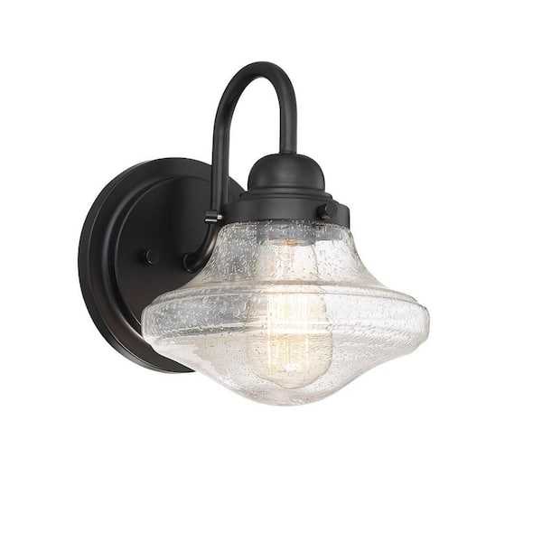 6.25 in. W x 14.25 in. H 1-Light Black Hardwire Outdoor Wall Sconce Lantern with Clear Seeded Beveled Glass