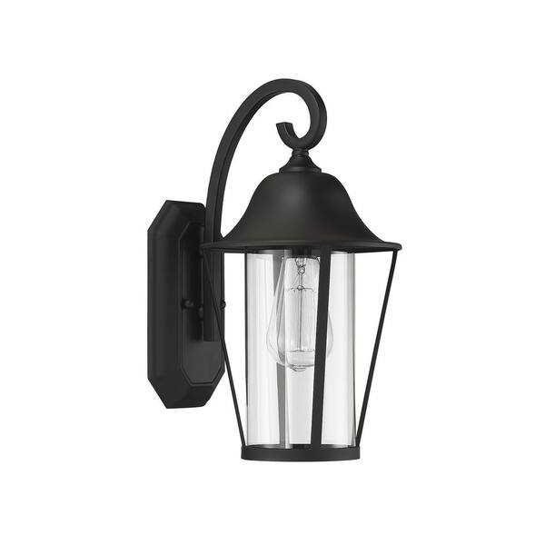 7.5 in. W x 14 in. H 1-Light Matte Black Hardwired Outdoor Wall Lantern Sconce with Clear Cylinder Glass Shade