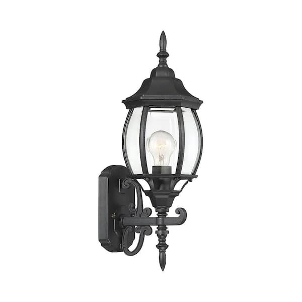 7 in. W x 18 in. H 1-Light Black Hardwire Outdoor Wall Sconce Lantern with Clear Beveled Glass