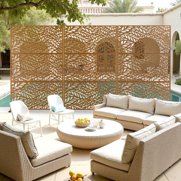 Metal Garden Fence 72 in. H x 47 in. W Outdoor Privacy Screen Patio Balcony, Freestanding Decorative Privacy Screen