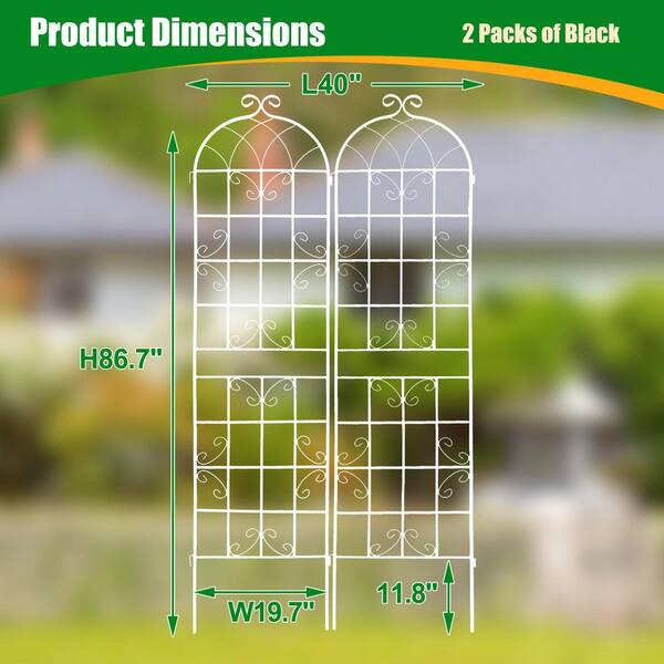 Metal Garden Trellis, 19.7"L x 86.7"H for Vines Plant Rose Vegetable Support, Decorative Outdoor Trellis (Black, 2 Pack)