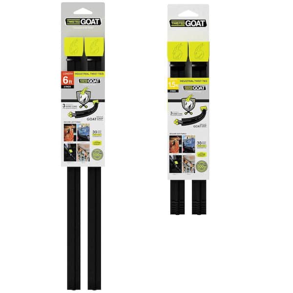 Industrial Heavy-Duty Reusable, Flexible Twist Ties-One 1.5 ft. (2-Pack) One 6 ft. (2-Pack)