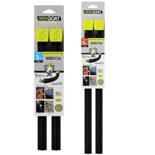 Industrial Heavy-Duty Reusable, Flexible Twist Ties-One 3 ft. (2-Pack) One 6 ft. (2-Pack)