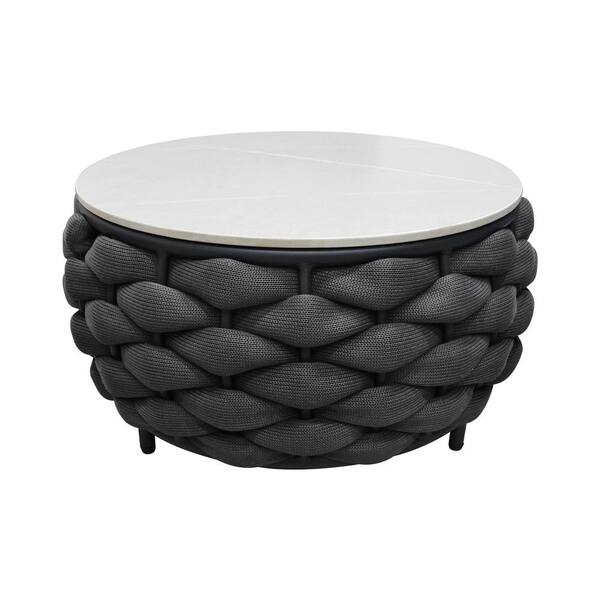 14.17 in. Dark Gray Waterproof Aluminum Coffee Table with Rock Slabs Table-Top