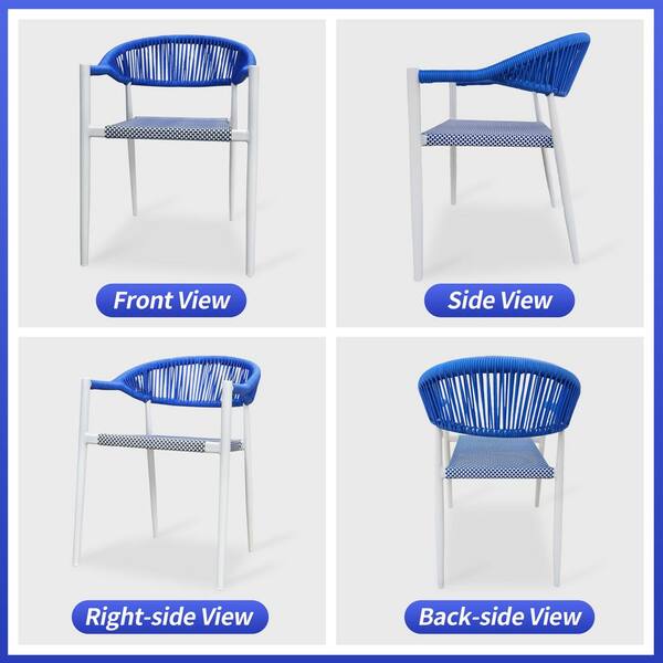 4-Pieces Blue Stackable Outdoor Hand-Woven Wicker Arm Dining Chair ,Bistro Chair, Aluminum Frame with PVC Cushion