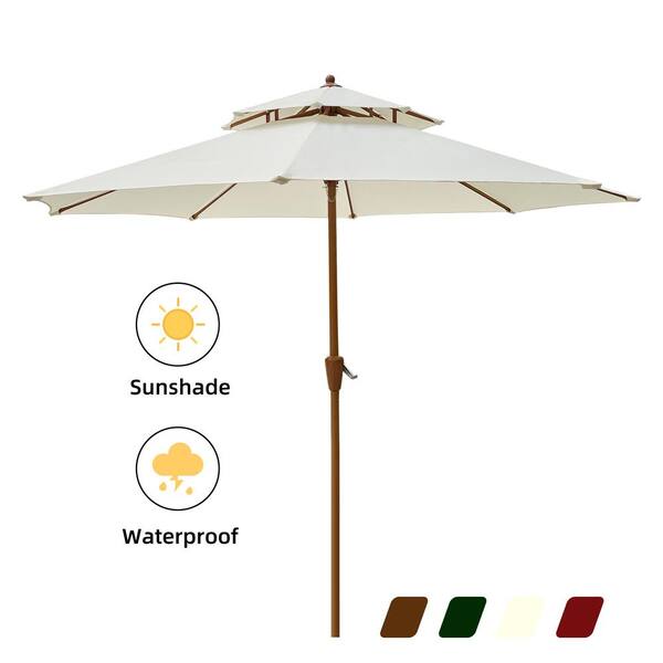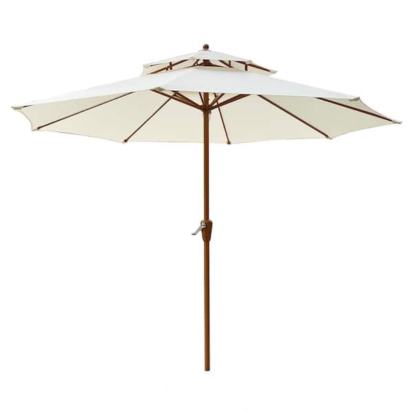9ft. Titanium Steel Non-Tilt Hand Crank Market Umbrella in Ivory