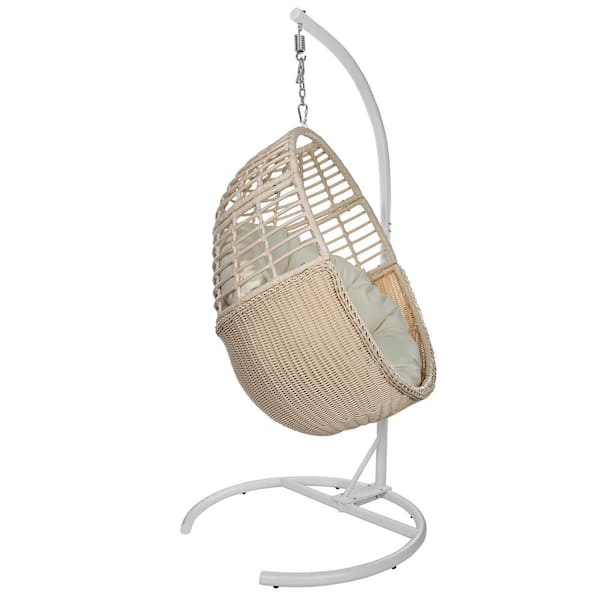 Heavy-duty 37inch Cream Porch Swing Basket Egg Chair with Metal Stand and PE Rattan for 1 Person