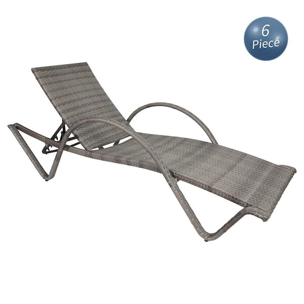 Set of 6 Large Size Gray HDPE Wicker Outdoor Chaise Lounge Adjustable Backrest