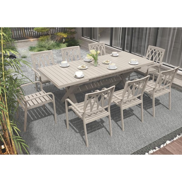 Tan Colour Rectangular Aluminium Outdoor Dining Table