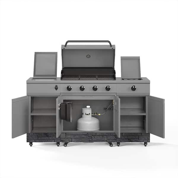 Fresno 5-Burner LP/NG Convertible Grill in Gunmetal plus Graphite Stone