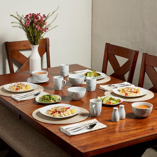 16-Piece Casual White with Pattern Ceramic Dinnerware Set (Service for 4)