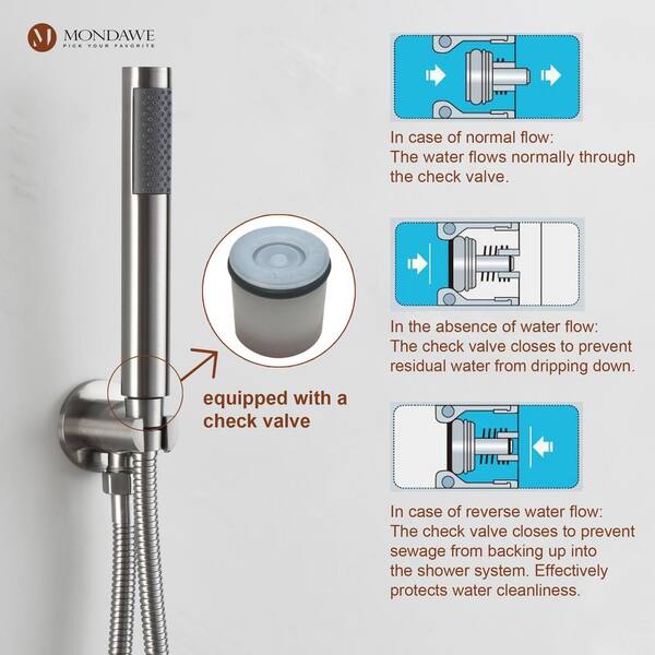1-Spray 10 in. Ceiling Mount 1.8 GPM Dual Shower Head and Handheld Shower Head in Brushed Nickel