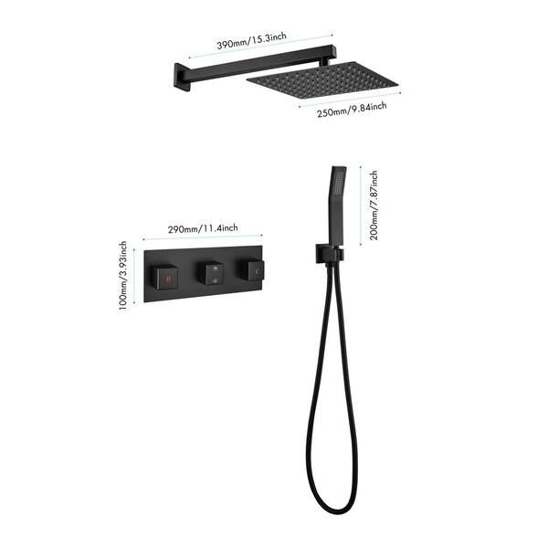1-Spray Patterns Freestanding Square Dual Handheld Shower Head 6 GPM in Matte Black