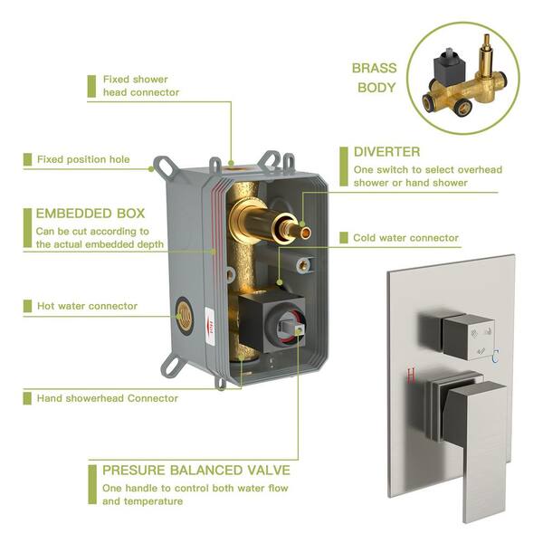 1-spray 12 in. Wall Mount 1.8 GPM Dual Shower Head and Handheld Shower Head in Brushed Nickel