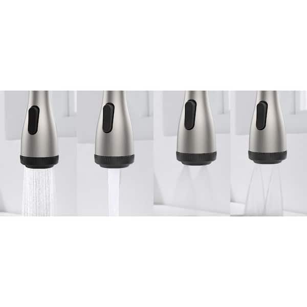 15.74 in. Kitchen Faucet with Pull Down Sprayer and 4-Spraying Modes Brushed Nickel 1 or 3 Hole 360° Spout Swivel