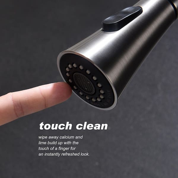 16.14 in Brushed Nickel 360 Degree Spout Swivel Kitchen Faucet with Pull Out Spraye