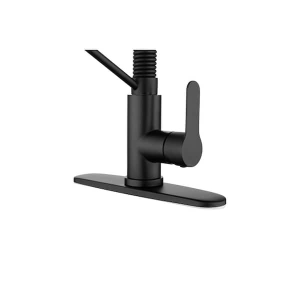 17.13 in Matte Black Kitchen Faucet with Soap Dispenser Single Handle 360 Degree Spout Swivel Kitchen Sink Faucet
