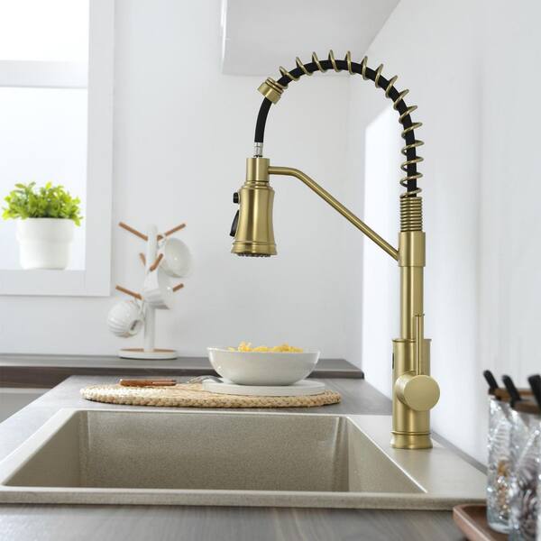 18.7 in.H Single Handle Pull Out Sprayer Kitchen Faucet in Brushed Gold with 360° Spout Swivel