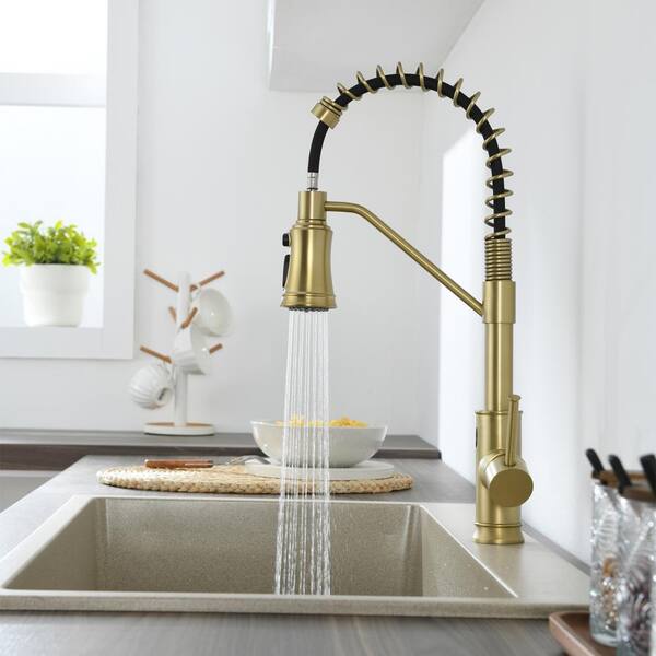 18.7 in. H Single Handle Pull Out Sprayer Kitchen Faucet with 360° Spout Swivel in Brushed Gold