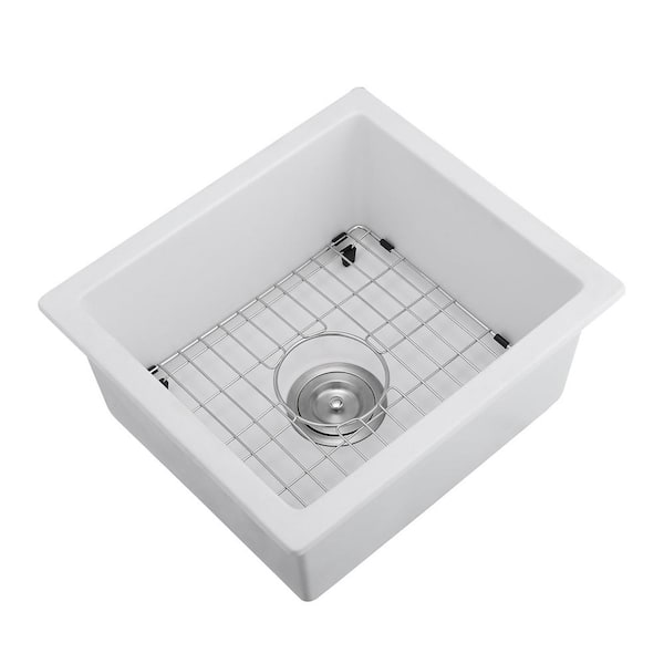 18 in. L x 16 in. W Undermount Single Bowl Ceramic Bar Sink With Grid And Strainer