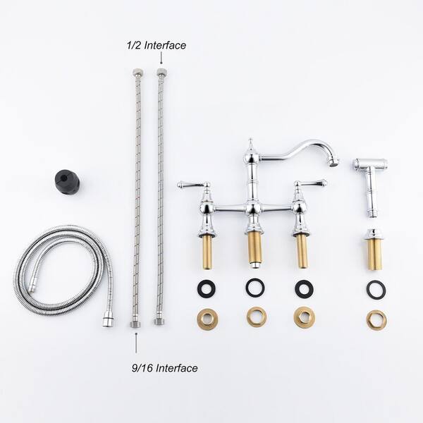 2 Handle Bridge Kitchen Faucet in Chrome