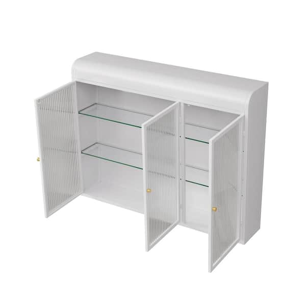 3-Door Arched Wall Mounted Glass Cabinets for Kitchen, Living Room and Bathroom (White)