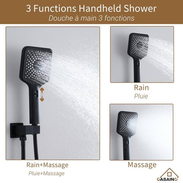 3-Spray 1.8 GPM Ceiling Mount Dual Square Handheld Shower Set in Matte Black