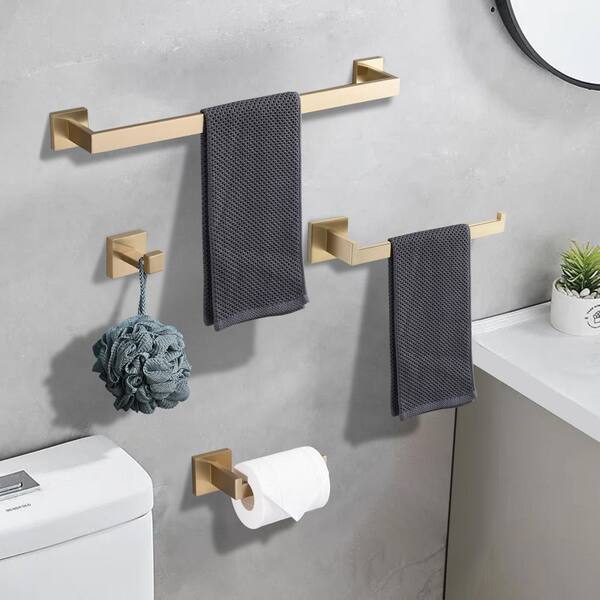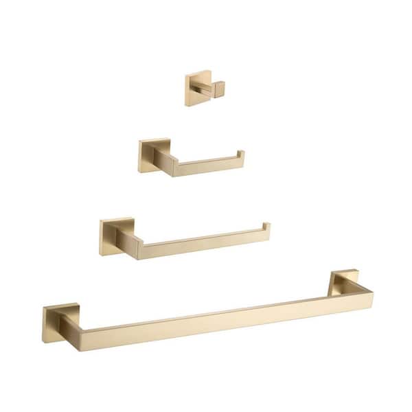 4-Piece Bath Hardware Set with Hand Towel Holder in Brushed Gold