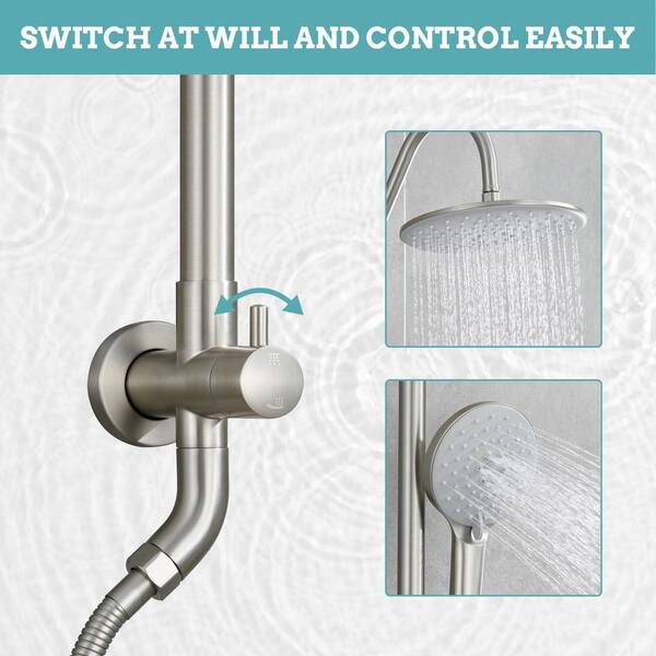 5-Spray Patterns 8 in. 2.5 GPM Rain Wall Mount Dual Shower Heads with Handheld Shower System in Brushed Nickel