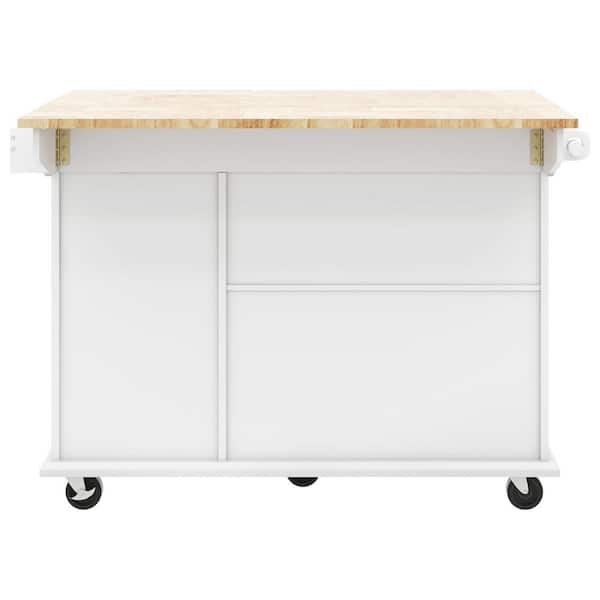 53.9 in. Rolling Kitchen Cart Island with Drop Leaf: 3-Tier Pull-Out Storage, Spice/Towel Racks and Internal in White
