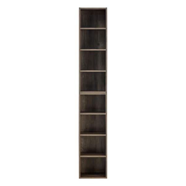 8-Tier Media Tower Rack, CD DVD Slim Storage Cabinet with Adjustable Shelves, Tall Narrow Bookcase in Gray