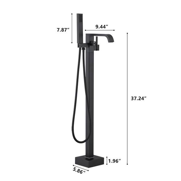 Double Handle Floor Mount Freestanding Tub Faucet with Hand Shower in Matte Black