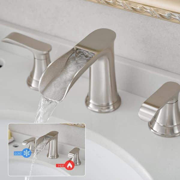 Double Handle Waterfall Vessel Sink Faucet with Drain Kit Included in Brushed Nickel