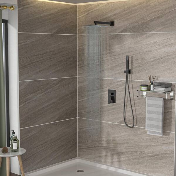 Dual Shower Head-12 in. Wall Mounted Square Shower System with Rough-in Valve, Oil Rubber Bronze