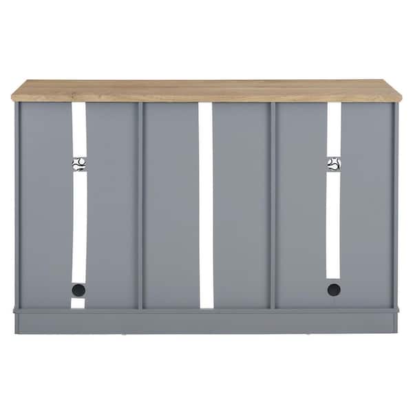 Modern Farmhouse Buffet Cabinet: 2-Drawers, Glass Doors, Wine Rack-Light Blue/Oak, 56.46 in. W