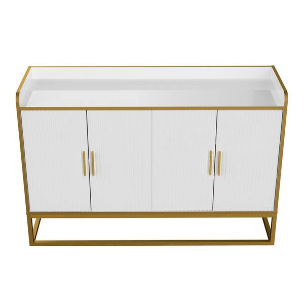 Modern Kitchen Buffet Storage Cabinet Cupboard White Gloss with Metal Legs for Living Room Kitchen