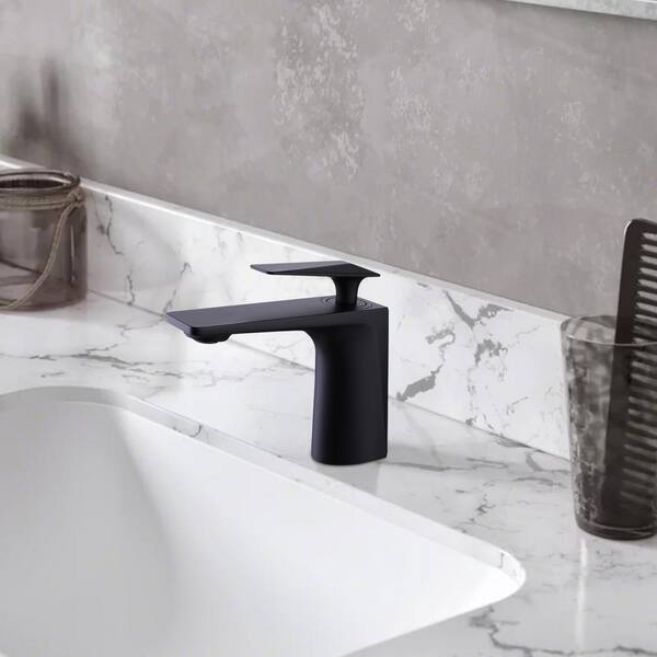 Modern Single Handle Single Hole Bathroom Faucet with Spot Resistant in Matte Black