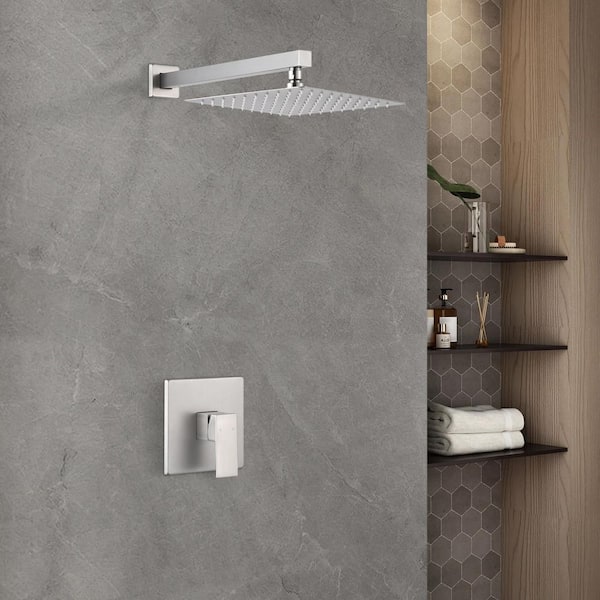 Single Handle 1-Spray Shower Faucet 2.5 GPM with Wall Mounted 10 in. Rain Shower Head Faucet in Brushed Nickel