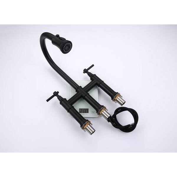 Single Handle Bridge Kitchen Faucet with Pull-Down Sprayhead in Spot in Matte Black