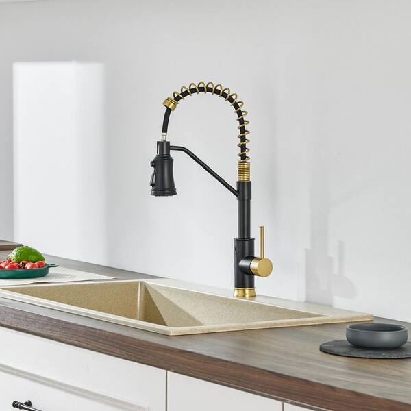 Single Handle Deck Mount Standard Kitchen Faucet in Matte Black and Gold