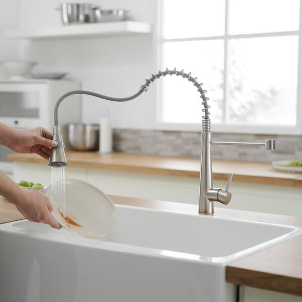Single Handle Pull Down Sprayer Kitchen Faucet 15.2 in. 360 ° Spout Swivel Stainless Steel Taps in Brushed Nickel