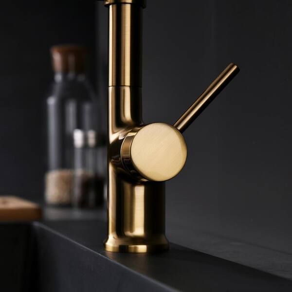 Single-Handle Pull Down Sprayer Kitchen Faucet with LED Kitchen Sink Faucet in Brushed Gold